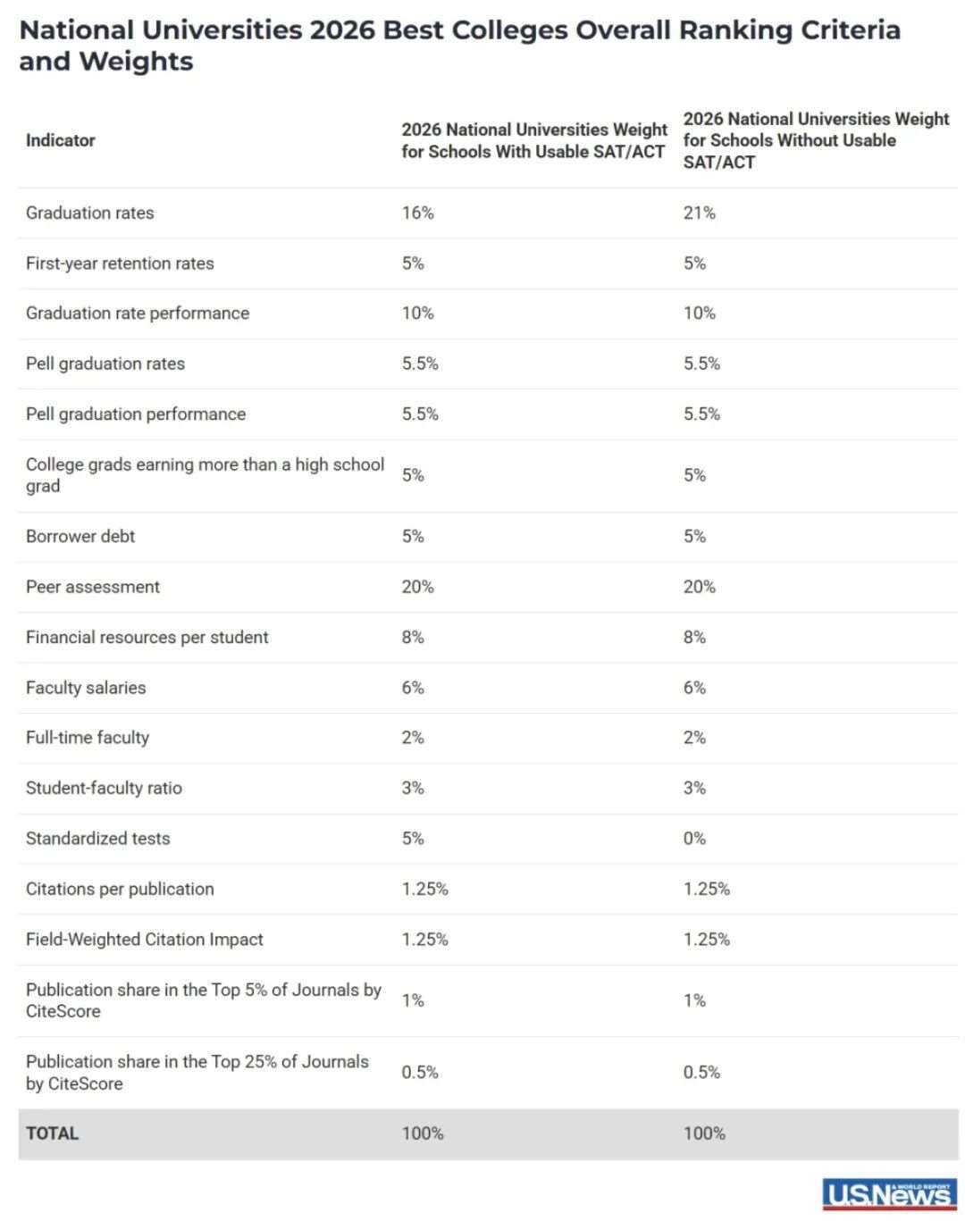 U.S. News的年度大学排名方法每年通常都会进行微调。